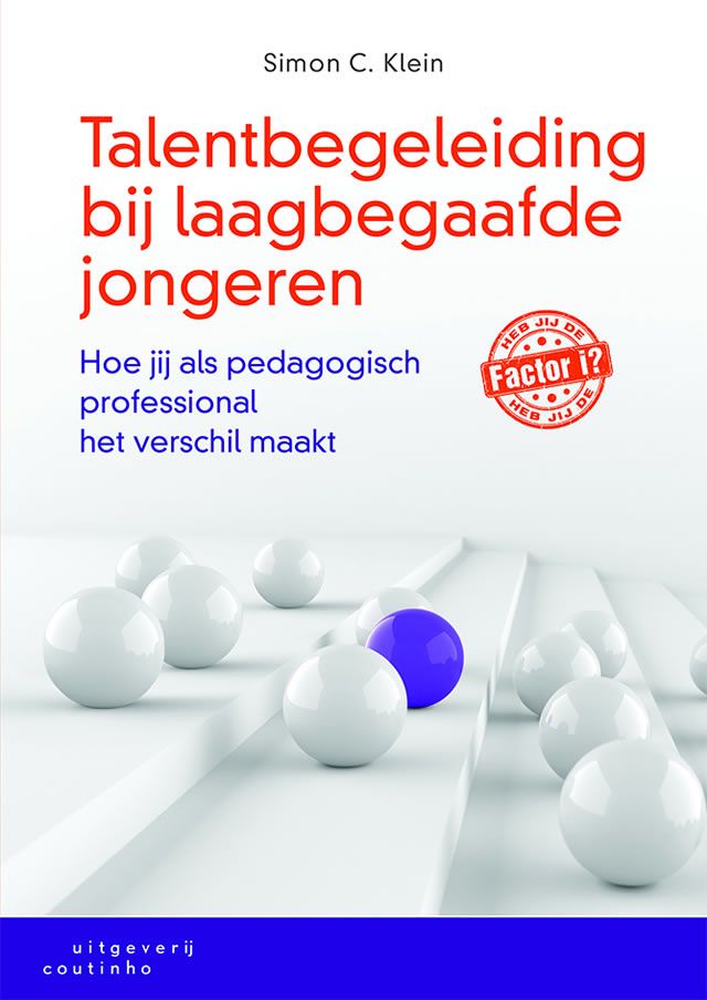 Talentbegeleiding bij laagbegaafde jongeren is de eerste uitgave die opvoeders en begeleiders praktische vaardigheden leert om de ‘Factor i’ te kunnen bieden: Iets of Iemand die doelbewust het verschil maakt bij deze jongeren in het laten ontdekken en ontwikkelen van hun talenten. Het boek rijkt in drie delen de essentiële informatie aan om hierop meer grip te krijgen. Deel I biedt inzicht in de manier waarop deze jongeren functioneren en leren. Het tweede deel gaat in op hoe zij zich ontwikkelen in de puberteit. Deel III bespreekt de cruciale omgevingsfactoren die de jongeren beïnvloeden, stimuleren of juist remmen bij het ontwikkelen van hun talenten.